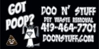 Doo N' Stuff, LLC is your Toledo Ohio and parts of Michigan 100% Satisfaction Guaranteed Pet Waste Removal Company you can count on. Dog waste is removed from the yard. Then double bagged and placed in the customers garbage can in accordance with Ohio and Michigan laws. With the Doo N' Stuff Service, you're family will never concern themselves again with this no so "family friendly" type of chore all us Pet Owners grapple with in Toledo Ohio! Plenty of happy customers - check the Facebook links of happy Dog Owners just like yourself. Great Rates. Great Attitude. Great Services Homeowners and City Parks can count on. 419-464-7701. Click on the Logo to visit the Website and simply call for Service in Ohio and Michigan States.